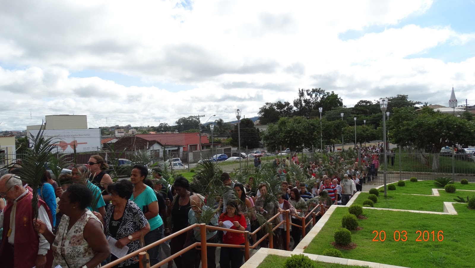 Na manhã deste domingo, dia 20 de março, a Comunidade de São Sebastião, celebrou o Domingo de Ramos. A celebração foi presidida por Cônego Tarcísio, e teve início na praça defronte à Matriz, com a benção dos ramos, seguida da procissão até a igreja, onde tivemos a continuação da celebração. Em sua homilia, cônego Tarcísio nos convida a pensar sobre a Semana Santa, fazendo memória à paixão, morte e ressurreição do Senhor, nos levando a contemplar a vitória do Cristo sobre o calvário e a morte, ressuscitando e vencendo todo o pecado. Esta Semana Santa é celebrada dentro do ano da misericórdia, proclamada pelo Papa Francisco, desde dezembro, para que este ano dedicássemos a fazer a contemplação da misericórdia de Deus, buscando assimilar os ensinamentos de Jesus e crescermos no exercício da misericórdia. E o que é ser misericordioso? É agir com o coração, se despojar de si mesmo em prol do outro, Jesus é o poço da misericórdia, Ele despiu-se de si mesmo e assumiu a nossa humanidade para nos resgatar do pecado e da morte. Esta é a misericórdia de Deus que vem até nós para manifestar o seu amor e o seu perdão. Cristo é o estrangeiro que vem ao encontro desta humanidade que está ferida pela podridão, pela corrupção, pelos vícios e injustiças que assolam este país. E Ele vem ao nosso encontro para nos salvar destas misérias e nos projeta para a vida em comunhão com Ele. Nós não podemos perder a esperança de vida e salvação em Jesus Cristo, mesmo estando perplexo com a situação política do nosso país. Peçamos ao Cristo, que Ele tenha misericórdia de nós, do nosso país e que nos ajude a buscarmos caminhos alternativos para construirmos uma sociedade mais justa, que de fato esteja a serviço da humanidade e do povo. É preciso clamar a Deus todo misericordioso para que Ele nos livre das misérias e podridões do mundo.