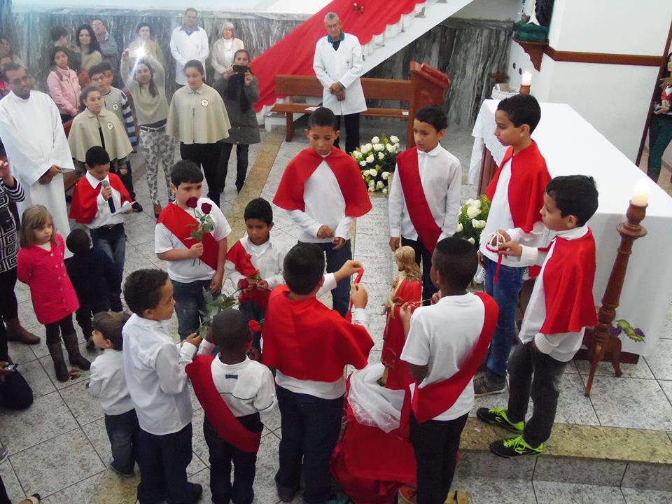 A Comunidade de São Domingos de Gusmão celebrou neste domingo, dia 28 de junho a Solenidade de São Pedro e São Paulo, as duas colunas de nossa fé. A fé que professamos recebemos como herança destes dois apóstolos. Ambos deram a vida pela causa do Evangelho, conheceram e experimentaram Cristo de formas diferentes. Em ambos, quer na vida, quer no martírio, prolongam-se a vida, paixão, morte e ressurreição de Cristo. Viveram até as últimas consequências a opção que fizeram por Jesus. Foi realizada a Celebração da Palavra presidida pelo Seminarista Rodrigo Arthur, que nos disse em sua reflexão que os apóstolos Pedro e Paulo ofereceram a sua vida, que é o dom mais precioso à serviço do Reino de Deus. Que possamos também nós nos oferecermos a Deus e ao seu Reino. Que rezemos por toda a Igreja que sofre, Igreja que somos nós. Que possamos estender as nossas mãos aos irmãos sofredores. Aproveitando a oportunidade convocou toda comunidade para que rezemos pela família de Vitor que se encontra desaparecido. Que possamos ajudar a divulgar nos meios de comunicação. Vitor e sua família são membros de nossa família paroquial de São Sebastião. Ao final da celebração Rodrigo comunicou que daqui a 4 meses terminará seus estudos no seminário e pediu orações para que se for da vontade de Deus e da Igreja ele possa ser ordenado sacerdote. Logo depois aconteceu o Desagravo ao Sagrado Coração de Jesus, feito pelos meninos de nossa comunidade, encerrando assim as comemorações do mês de junho, dedicado ao Coração de Jesus.